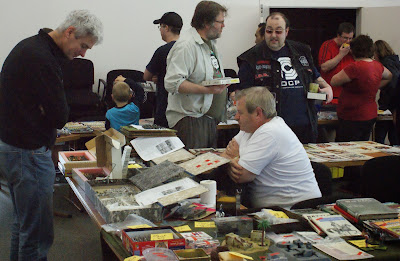 Our gratitute to the members and committee who all helped to make our second Swap Meet a roaring success. I for one went off with a load of miniatures, conversion bits, and terrain for both my loves- 20 mm WW 2 and Warhammer Fantasy. I sold quite a few carry cases, 1/72 models, the last of my 40K (CSM and SM), codexes, reference and source books, a handful of minis and lots of bits.